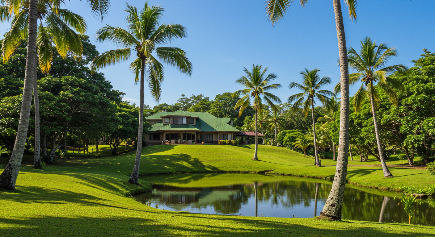 Built to rest on the rolling landscape to take advantage of the green mountain views, the home is safely situated above a year-round running stream, with the sound of falling water able to be heard from every room. Amongst the private park-like setting you will find a variety of mature fruit bearing trees such as avocado, coconut, and citrus. A fenced vegetable, herb, and flower garden along with a chicken coop are additional features of these impressive grounds.