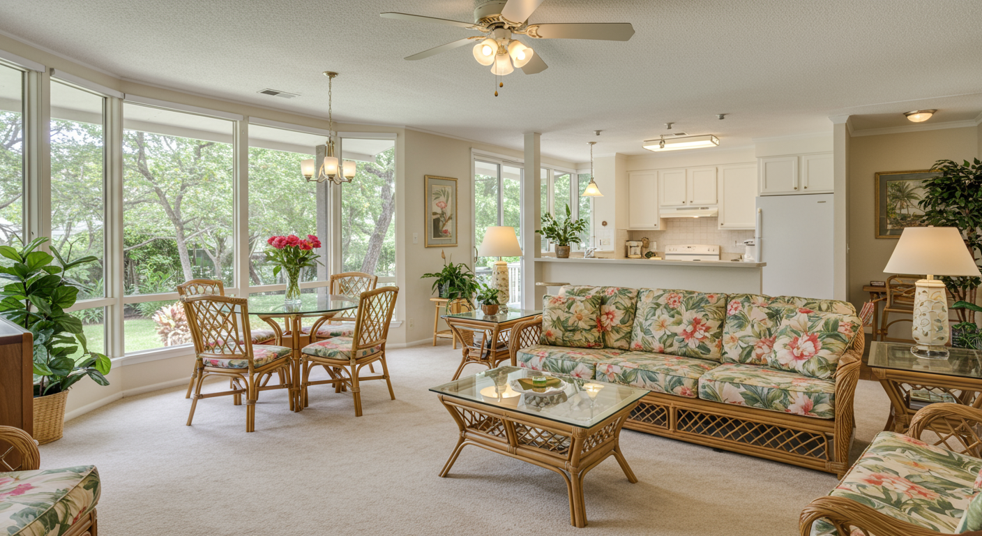 The house provides a spacious layout with mirror image primary suites on each end of the home joined by a large living area and open kitchen.